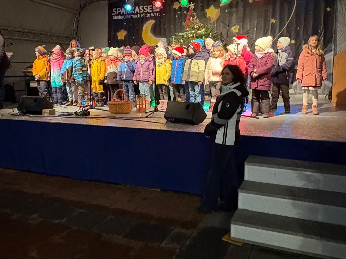 "Dicke rote Kerzen" klang es hell über den St. Pöltner Rathausplatz, als die Kinder der 1. und 2. Klassen die Eröffnung des 3. Adventfensters am Rathaus (Turmfenster) musikalisch umrahmen durften. Unsere Jüngsten haben ihren Auftritt ganz toll gemeistert!