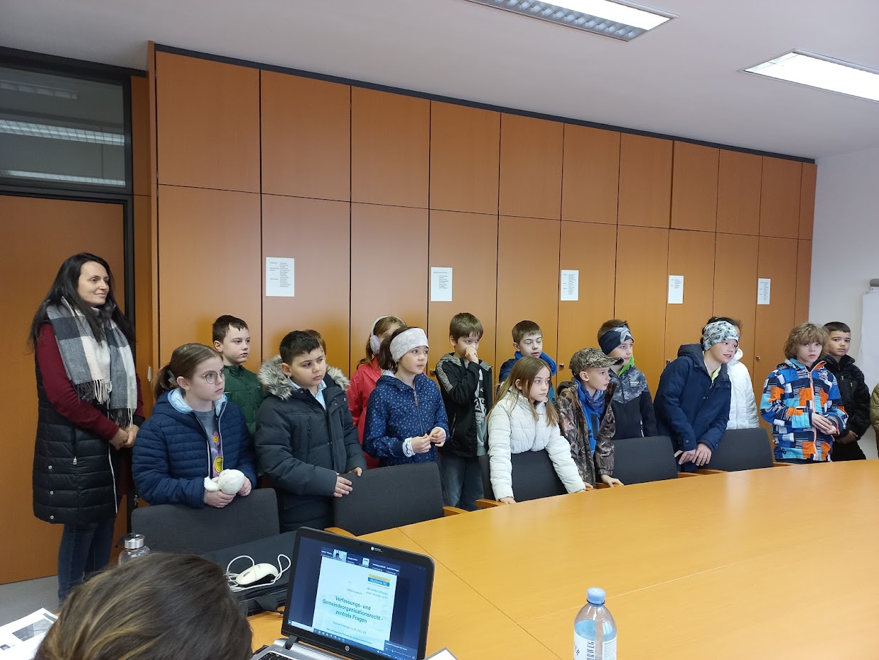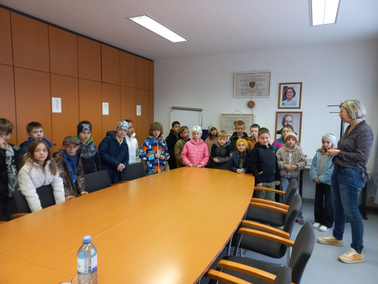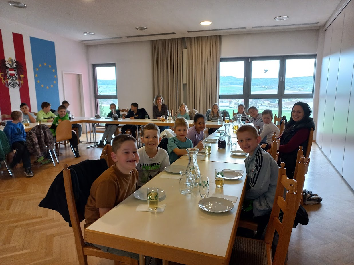 Am Dienstag, den 8. April, besuchten die beiden 3. Klassen auf Einladung der Bürgermeisterin Daniela Engelhart das Gemeindeamt in Obritzberg. Die Bürgermeisterin zeigte den Kindern die Räumlichkeiten der Gemeinde und lud sie zu einer Jause im Sitzungssaal ein. Dabei erzählten die Kinder, was sie alles über die Gemeinde gelernt hatten und konnten damit die Bürgermeisterin überraschen. Anschließend konnten sich die Kinder bei der Rundfahrt durch (fast) alle Gemeindedörfer ein BIld von der Größe der Gemeinde machen.