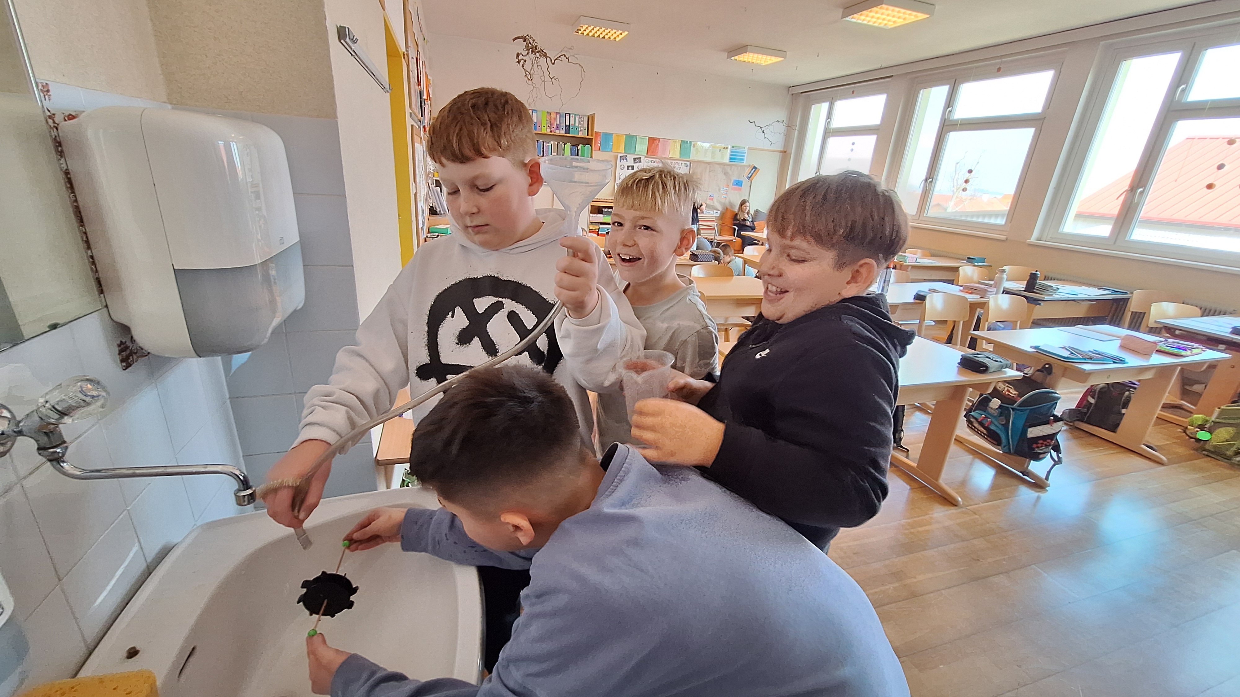 Die 4. Klasse erforschte in Versuchen Wasserkraft, Windkraft und die Nutzung der Elektrizität.